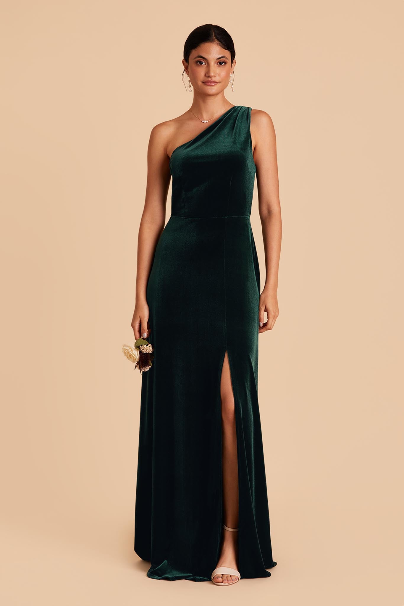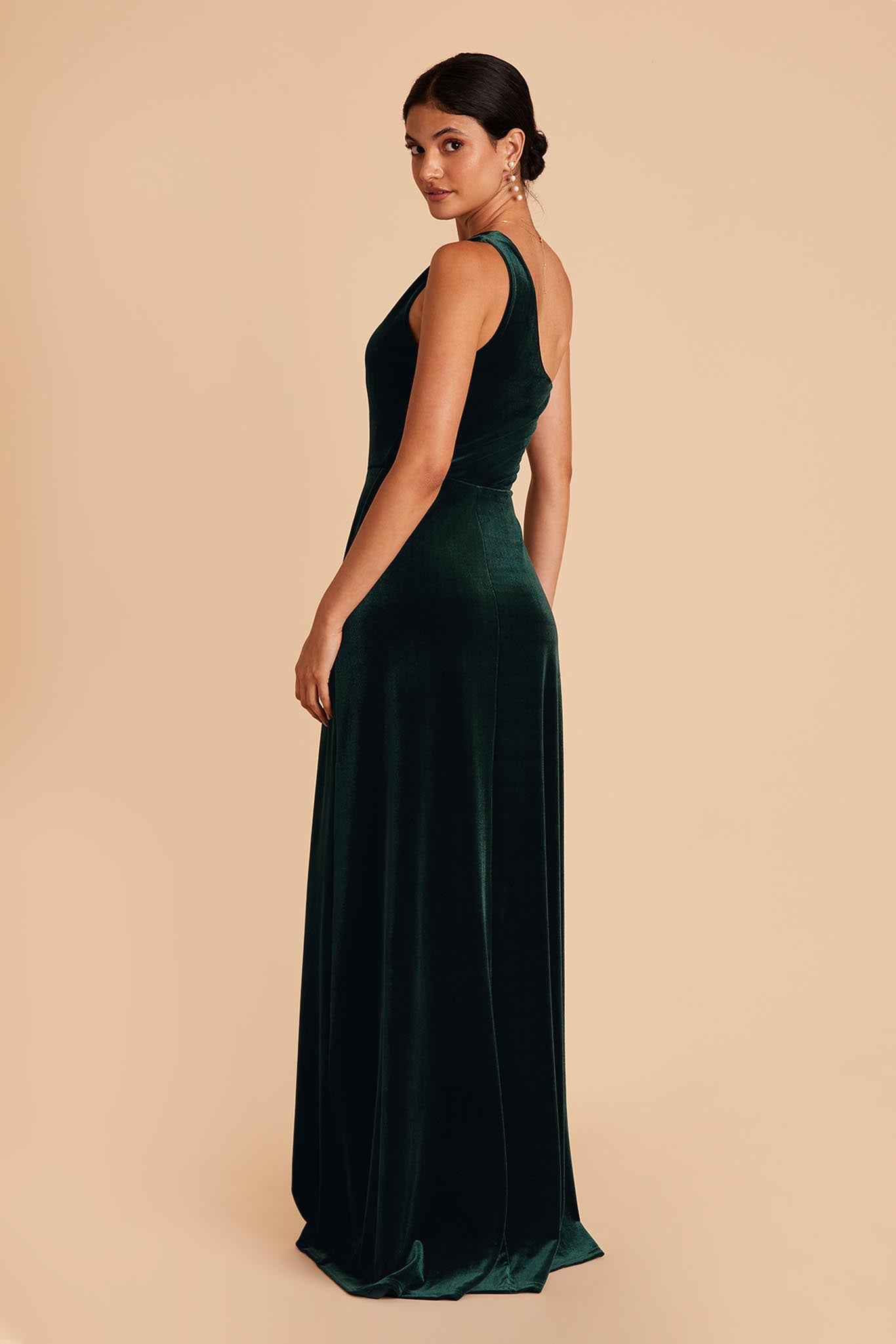 We love a good goddess vibe and this crepe bridesmaid dress does it a newfangled way thanks to our stretchy performance fabric. This one-shoulder bridesmaid dress features soft pleating that fades out at the top of the chest, giving off a proper ladylike vibe and makes for a stellar choice for bridesmaids who tend toward a modest look.