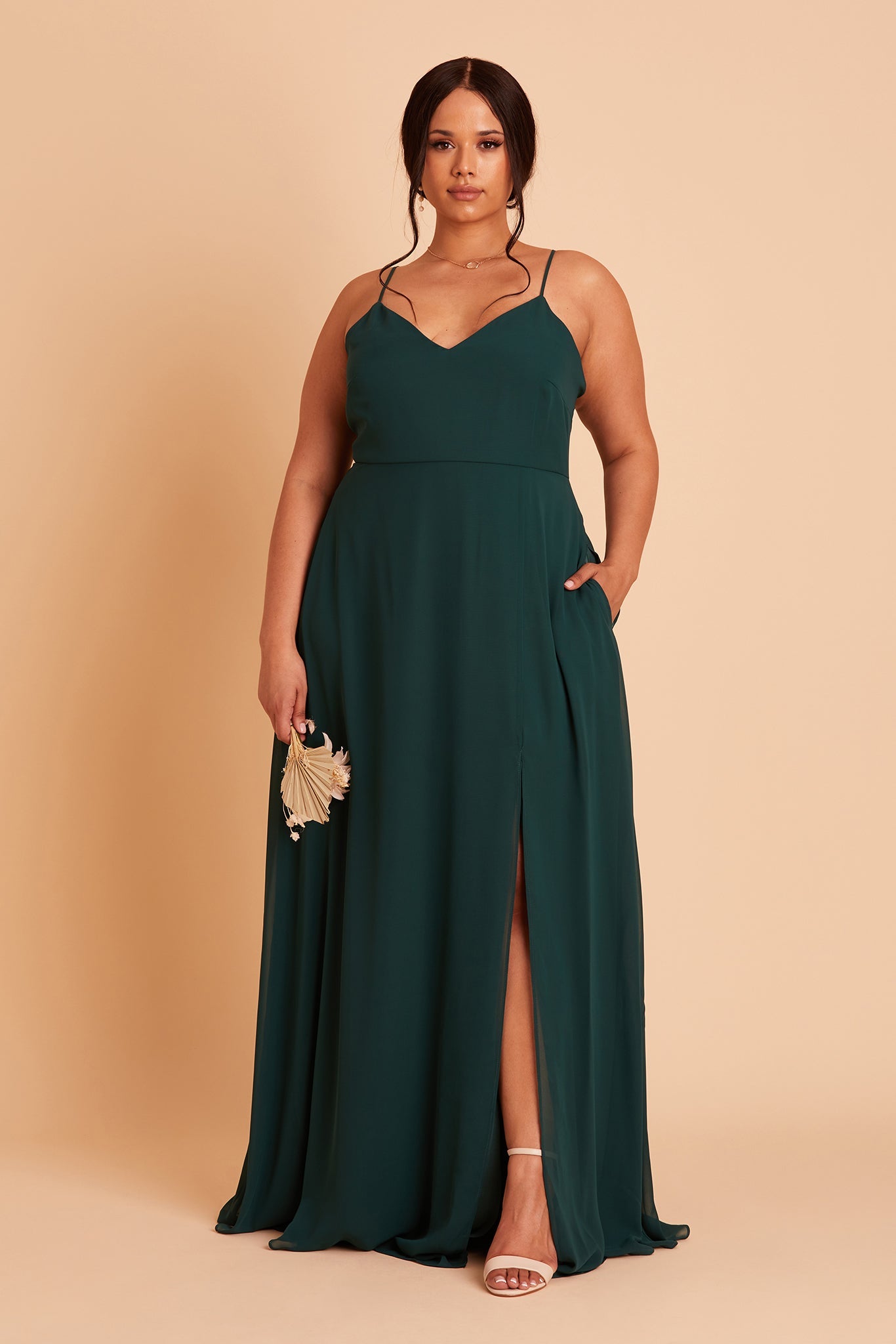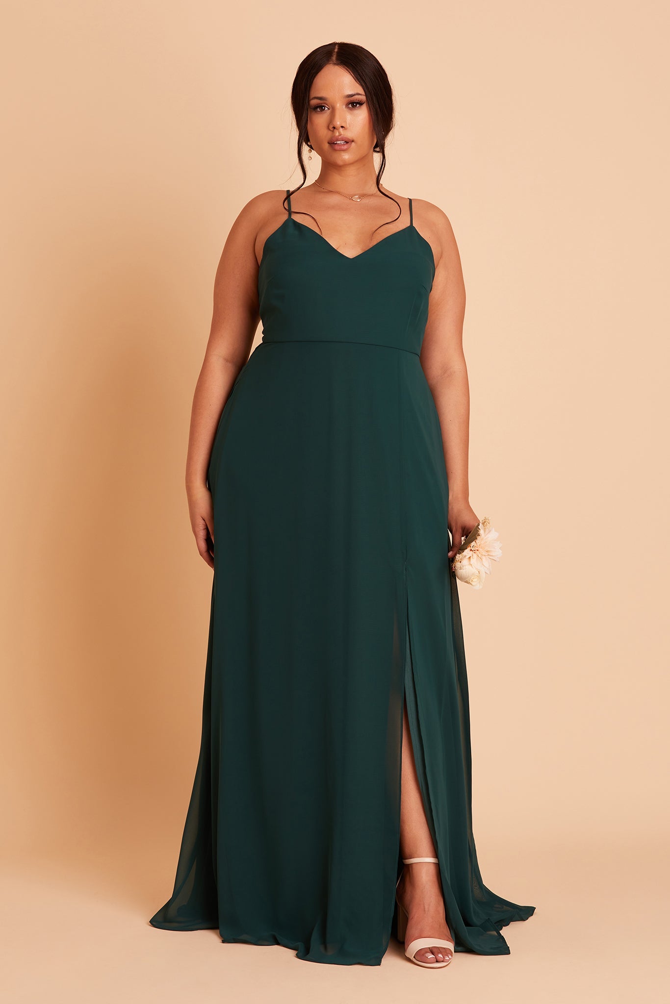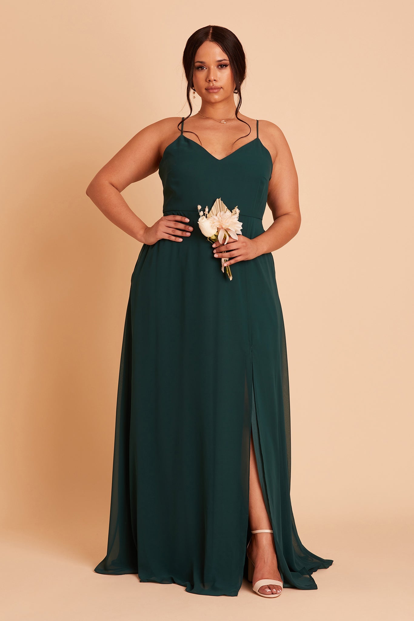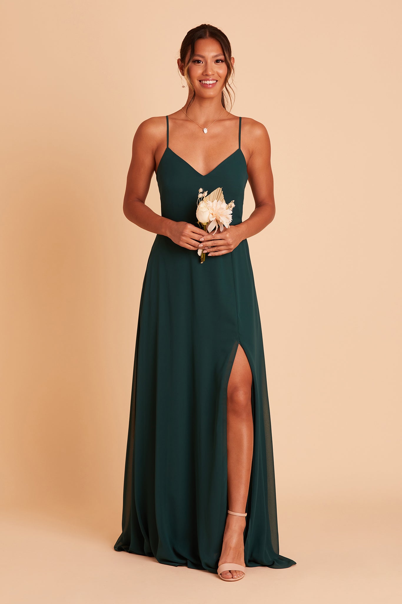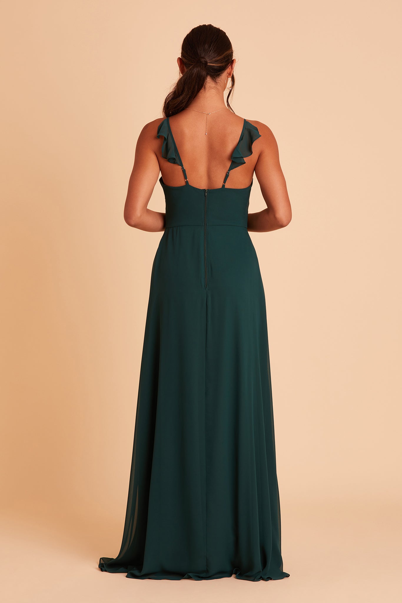 For a business-in-the-front, sweetness-in-the-back kind of look, we’re in love with the modern minimalism brought by this understated v-neckline and ultra-flattering fitted bodice. Give her a spin and everyone will fall for the airy chiffon number with a surprise flutter detail on the back of Adelle’s thin straps, bringing the perfect dose of flair and romance. For the bridesmaids who are equal parts feminine and minimal, this gown is just right.
