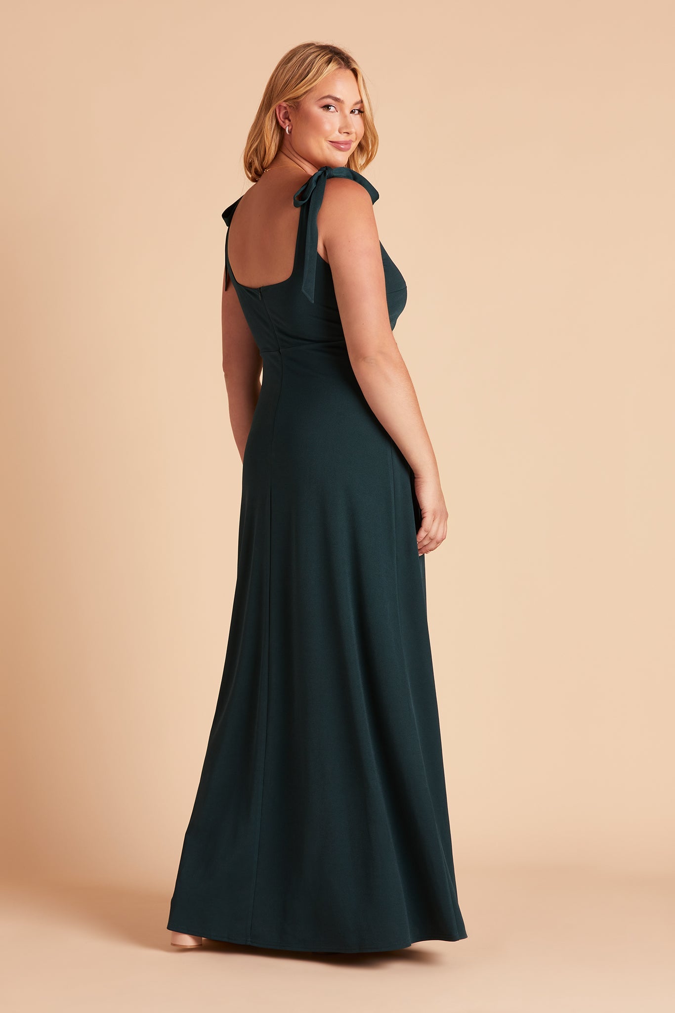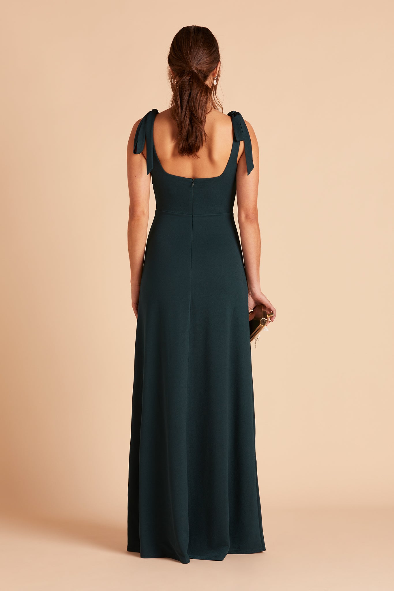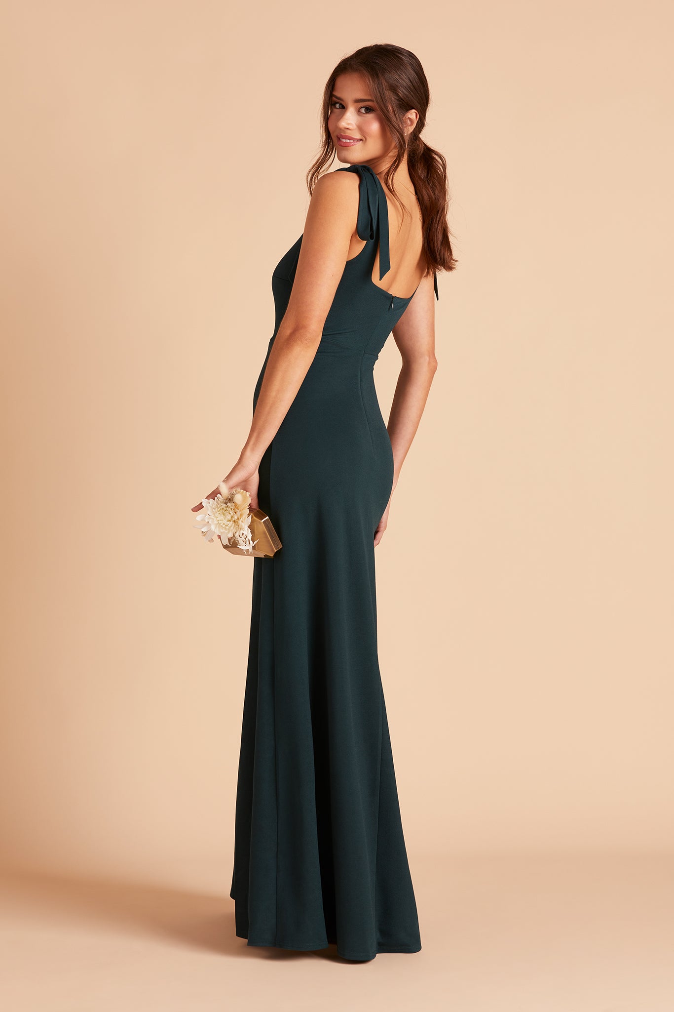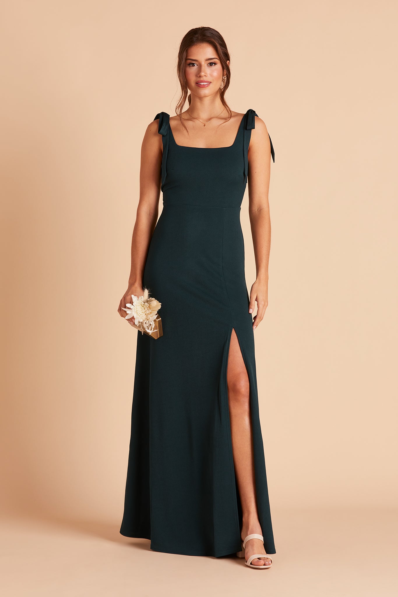 Our very first convertible crepe bridesmaid dress is equal parts modern and sweet. The square neckline is super flattering as it frames your collarbone and gives the illusion of being long and lean. The best part is that it comes with two extra straps that you can tie into a bow on each shoulder, instantly transforming this modern bridesmaid dress into a sweet look. Bows on or off, this is a dress for all the occasions.