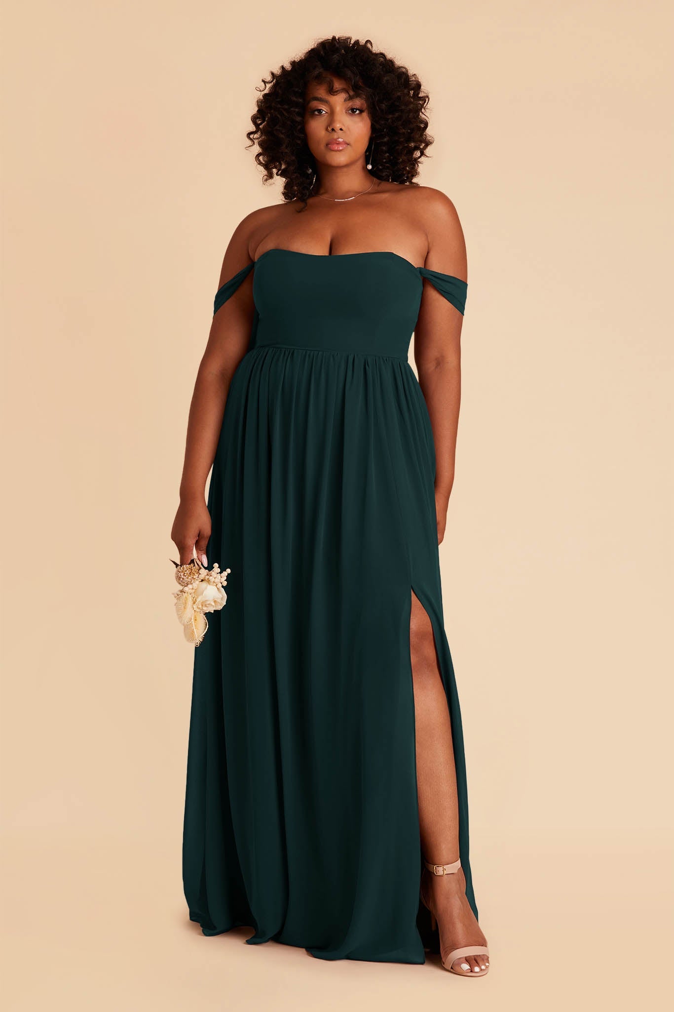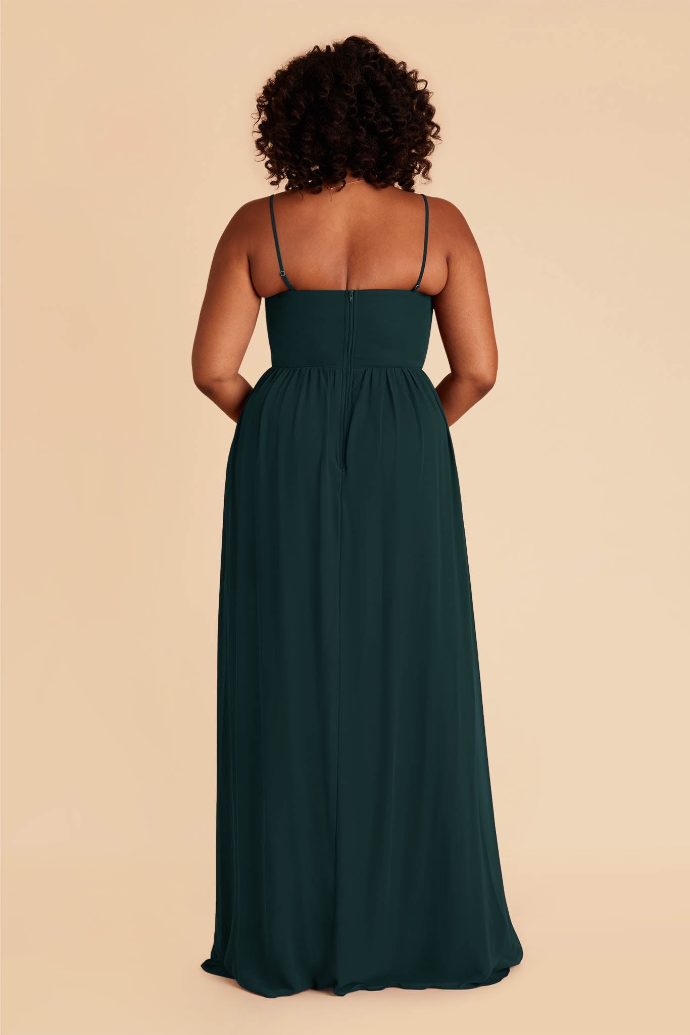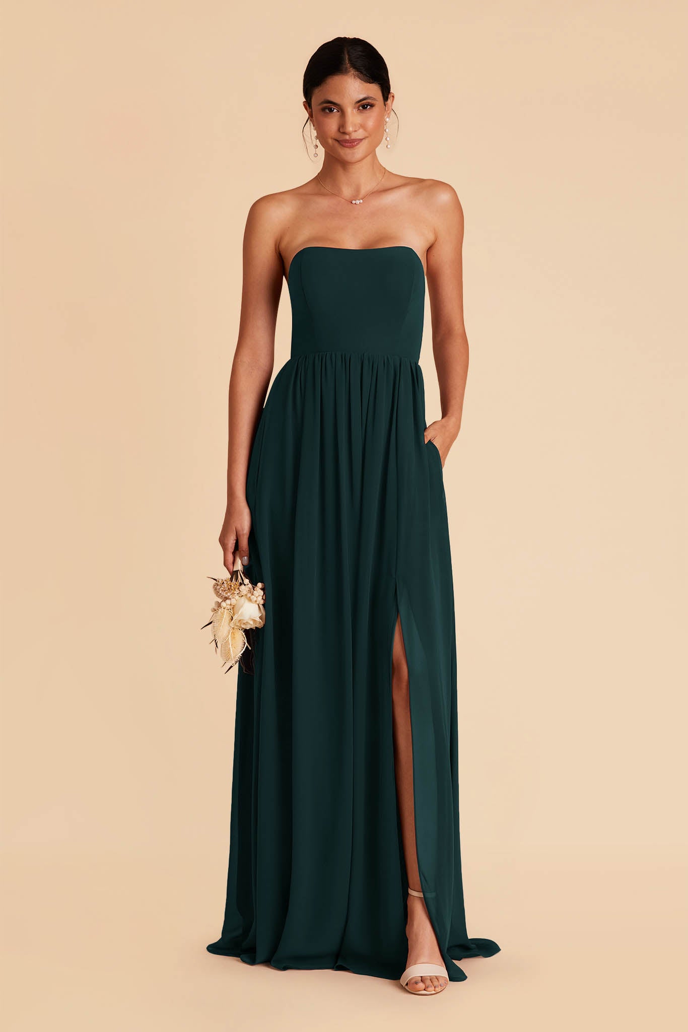 Less is absolutely more with this ultra-simple convertible dress. August features a straight neckline with removable straps. The bodice has boning for added structure and support. You can keep the straps on, remove it completely, or attach draped sleeves for an off-the-shoulder look.
