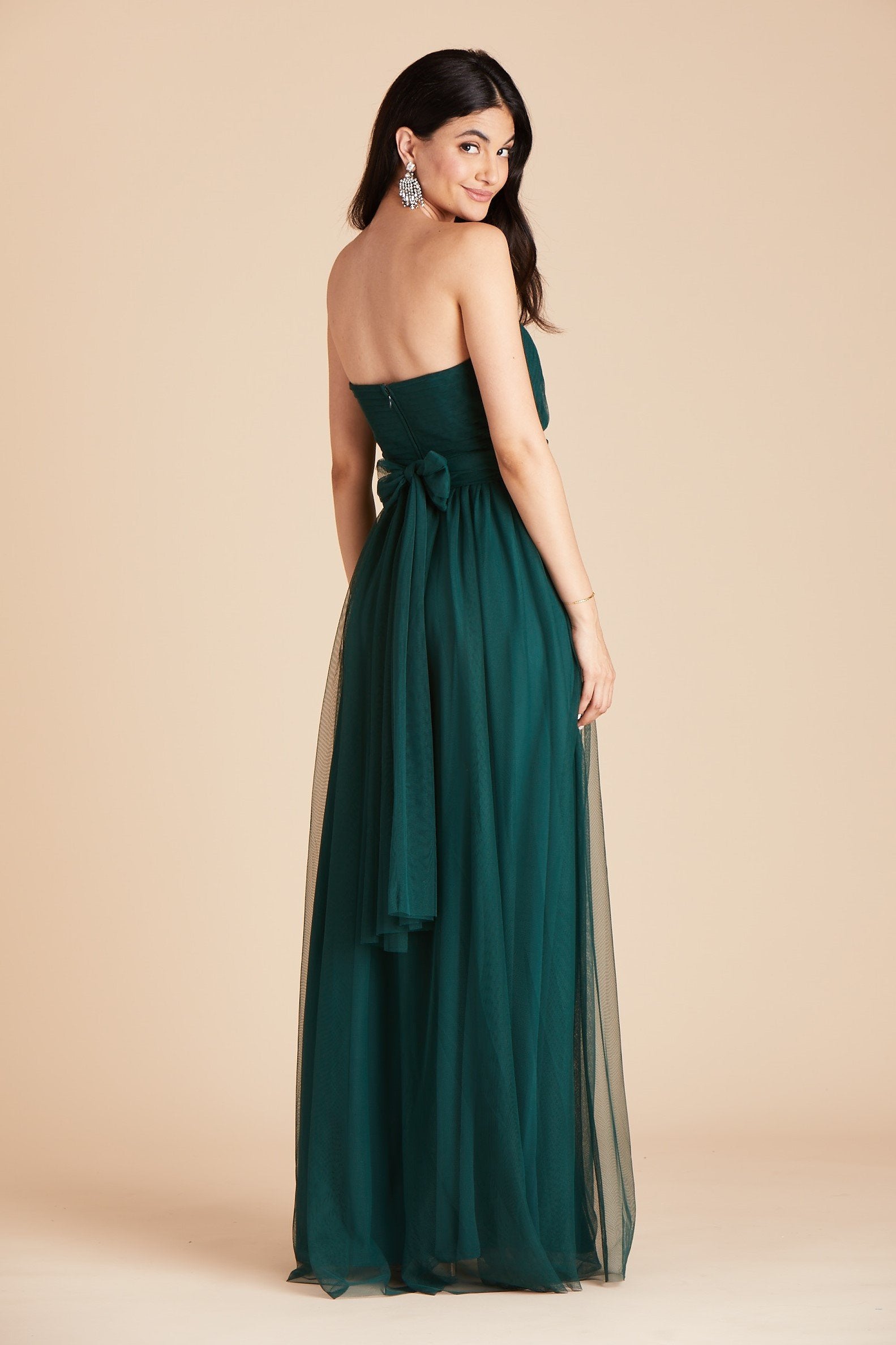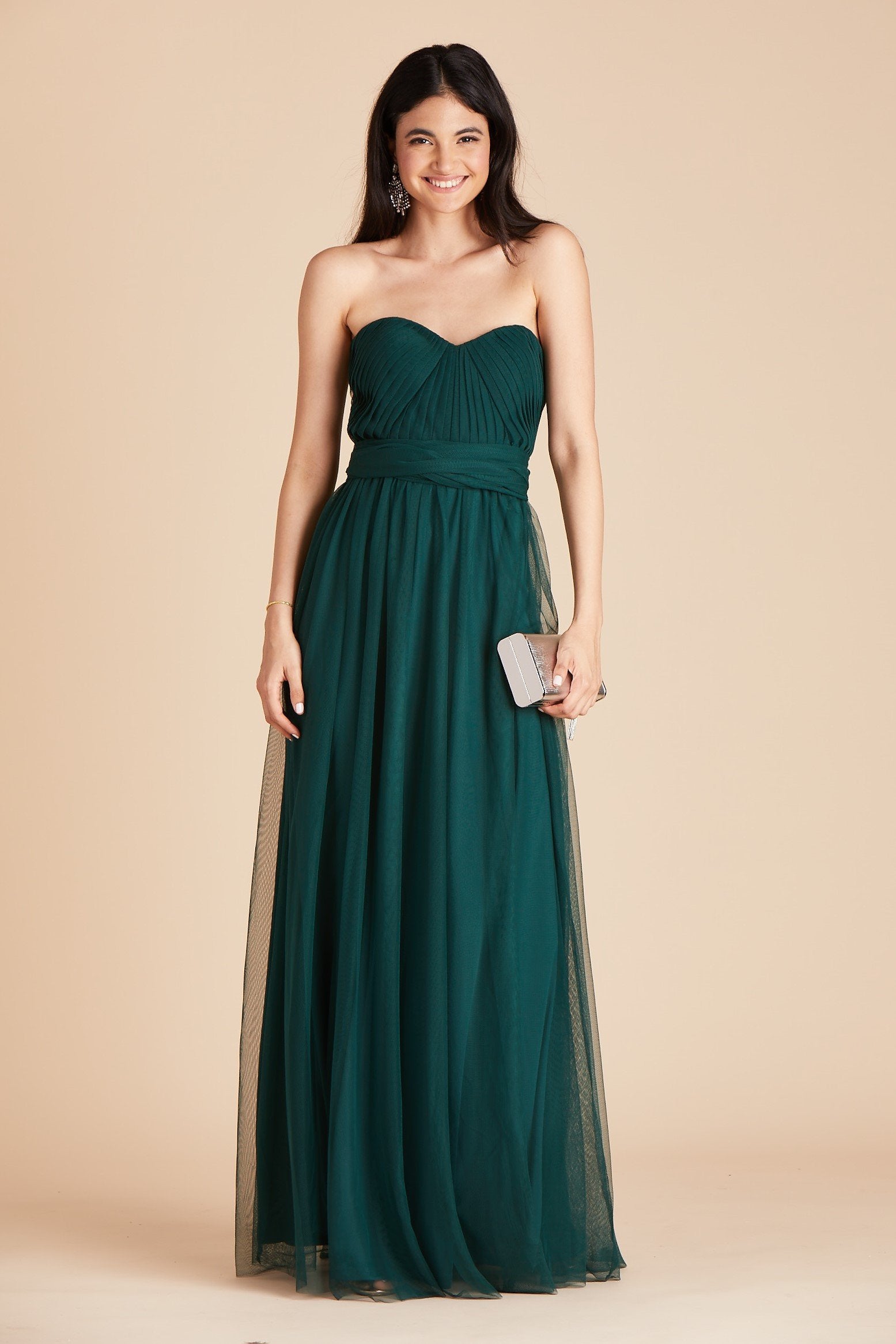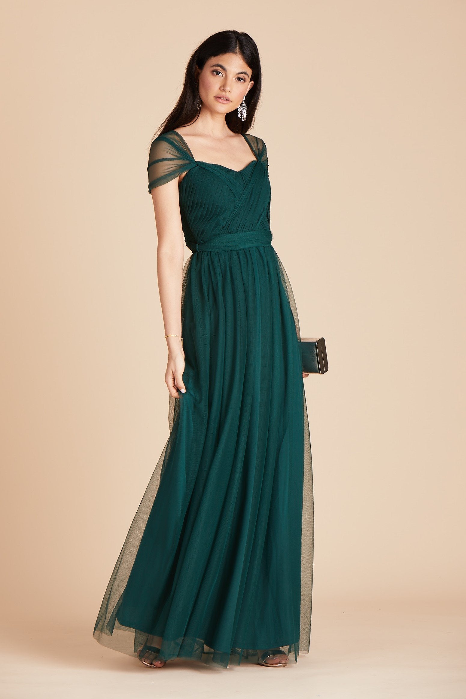 She's pretty and versatile. This convertible dress is spun of airy tulle and flaunts a gorgeous pleated bodice with a sweetheart neckline that flatters your body and a soft, sweeping column skirt that trails your every move. The two extra-long front streamers at the waist can be tied in a multitude of ways (too many to count, tbh!) to create everything from cap sleeves to one shoulder, or simply tied in a bow in the back for a romantic strapless look. This convertible bridesmaid dress is your one-and-done solution to dressing your entire #girlgang while giving them exactly what they want.