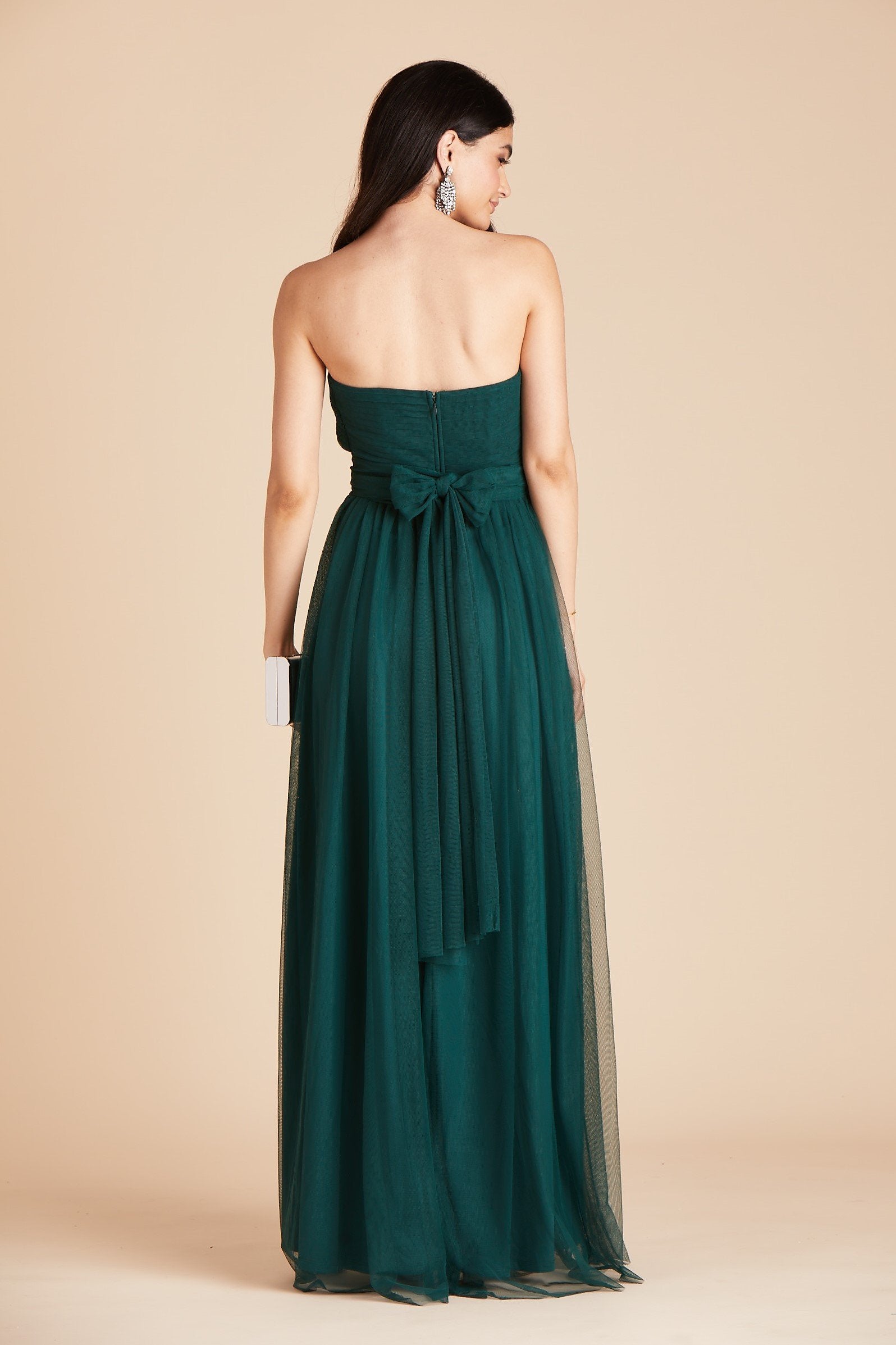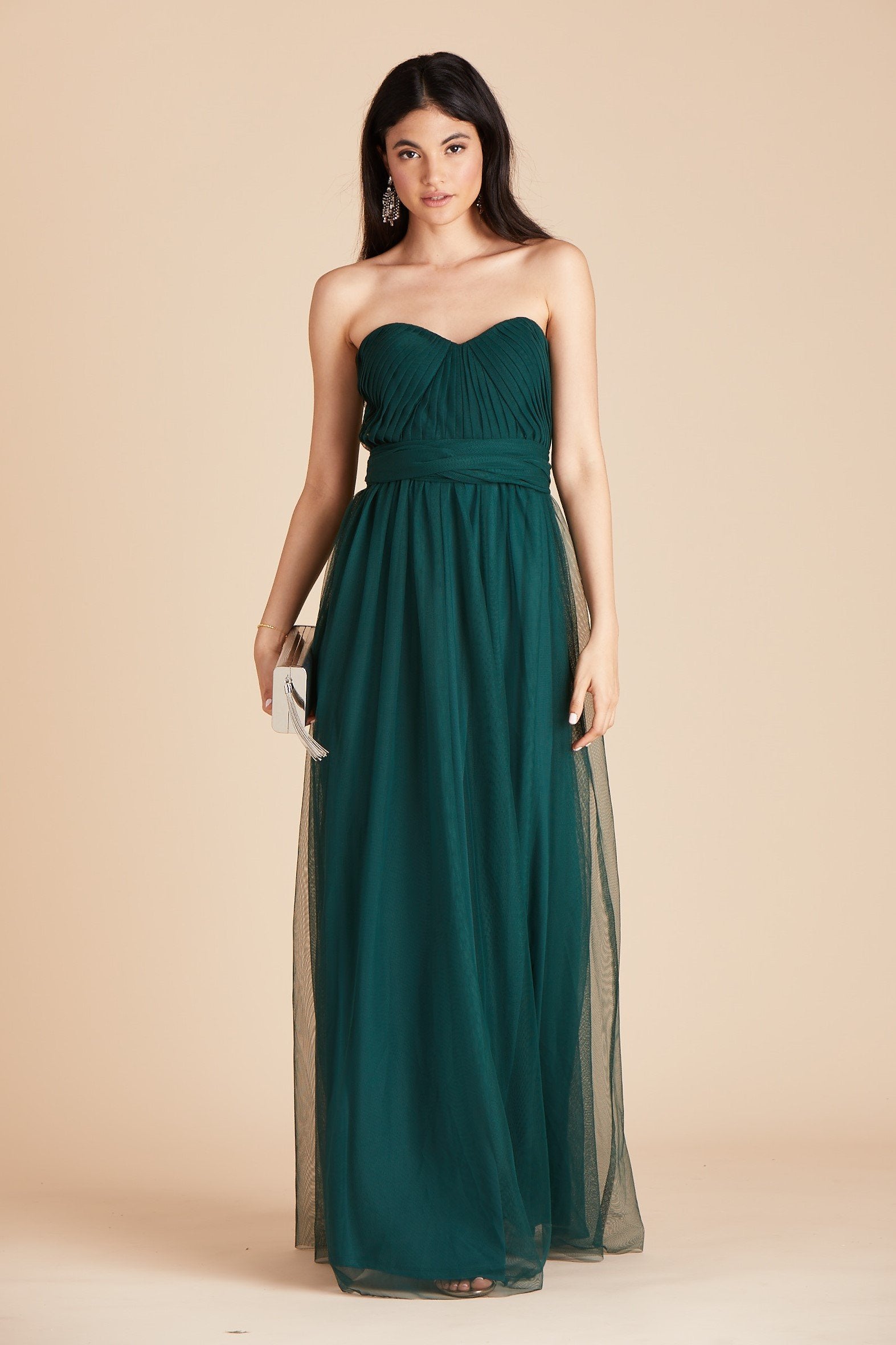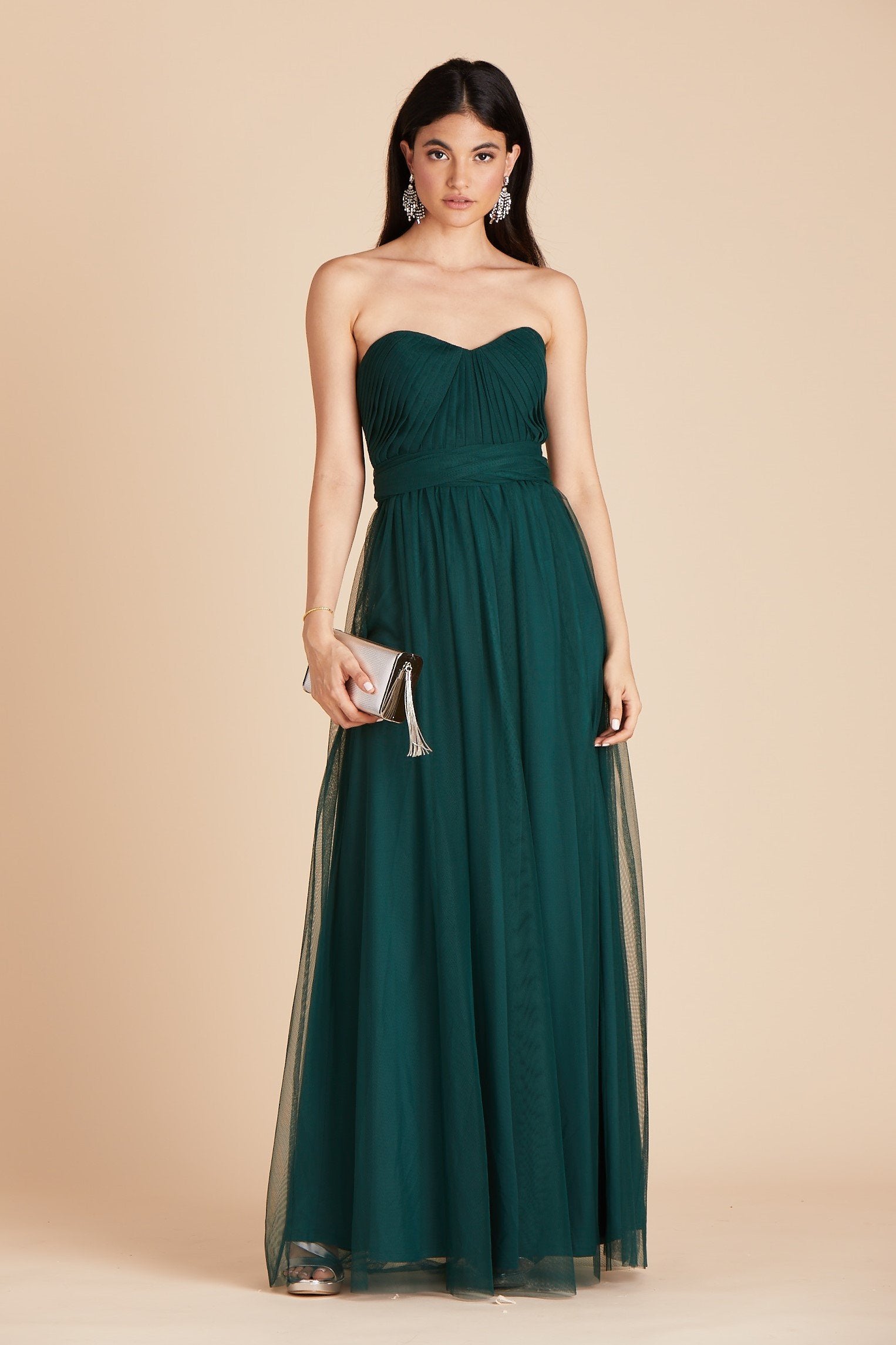 She's pretty and versatile. This convertible dress is spun of airy tulle and flaunts a gorgeous pleated bodice with a sweetheart neckline that flatters your body and a soft, sweeping column skirt that trails your every move. The two extra-long front streamers at the waist can be tied in a multitude of ways (too many to count, tbh!) to create everything from cap sleeves to one shoulder, or simply tied in a bow in the back for a romantic strapless look. This convertible bridesmaid dress is your one-and-done solution to dressing your entire #girlgang while giving them exactly what they want.