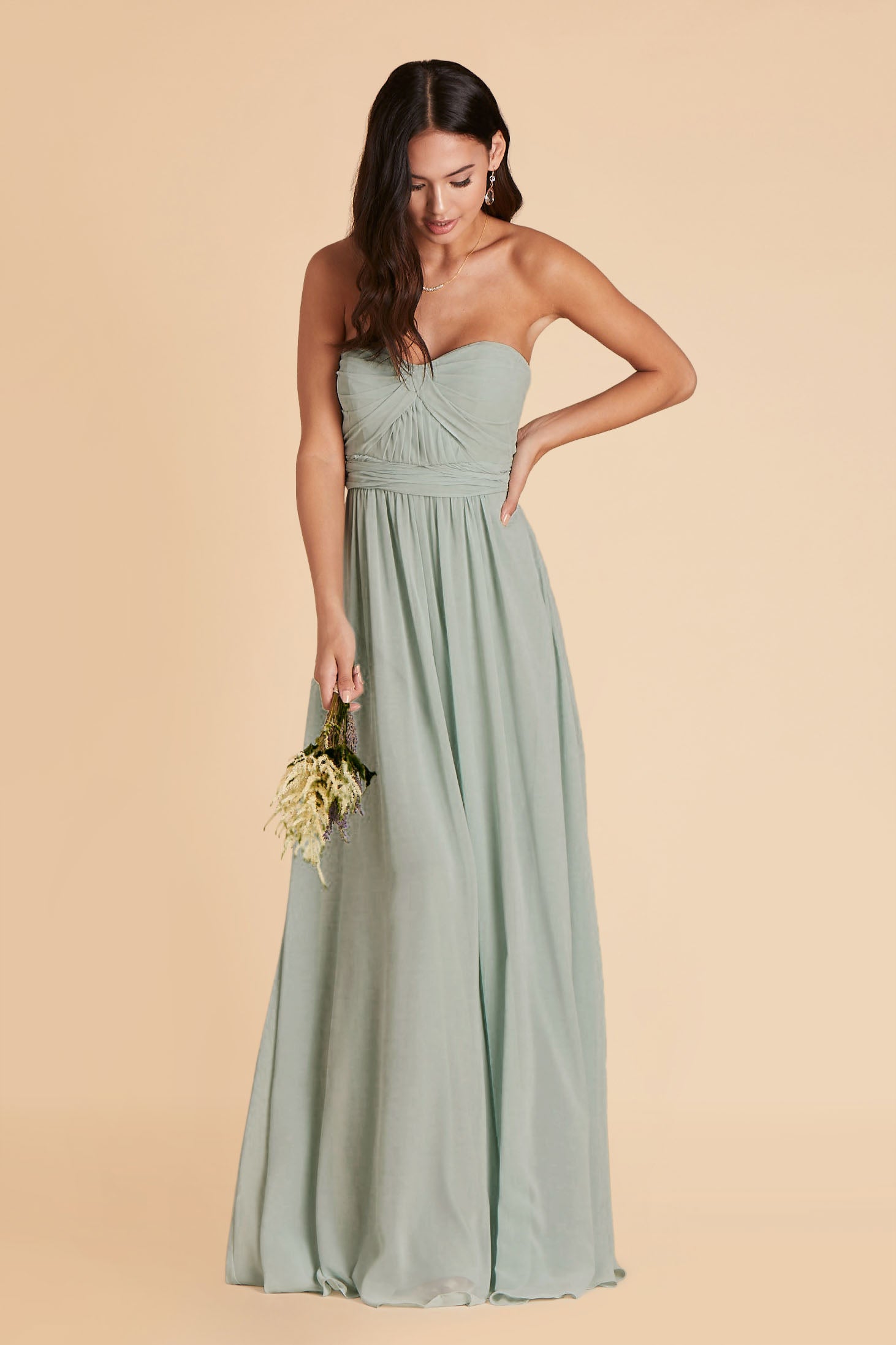 No two bridesmaids are alike and the Grace Convertible bridesmaid dress is your easiest solution for making the entire bridal squad happy—it's no wonder why it's our top-selling gown! Spun of airy chiffon, this multiwear bridesmaid dress comes with two long front streamers that you can tie in tons of different ways (halter, fluttery sleeves, off-the-shoulder—you name it). Plus, it features hidden pockets deep enough to hold your phone, tissues, and pins. Float down the aisle in this convertible bridesmaid dress that sways with your every movement.
