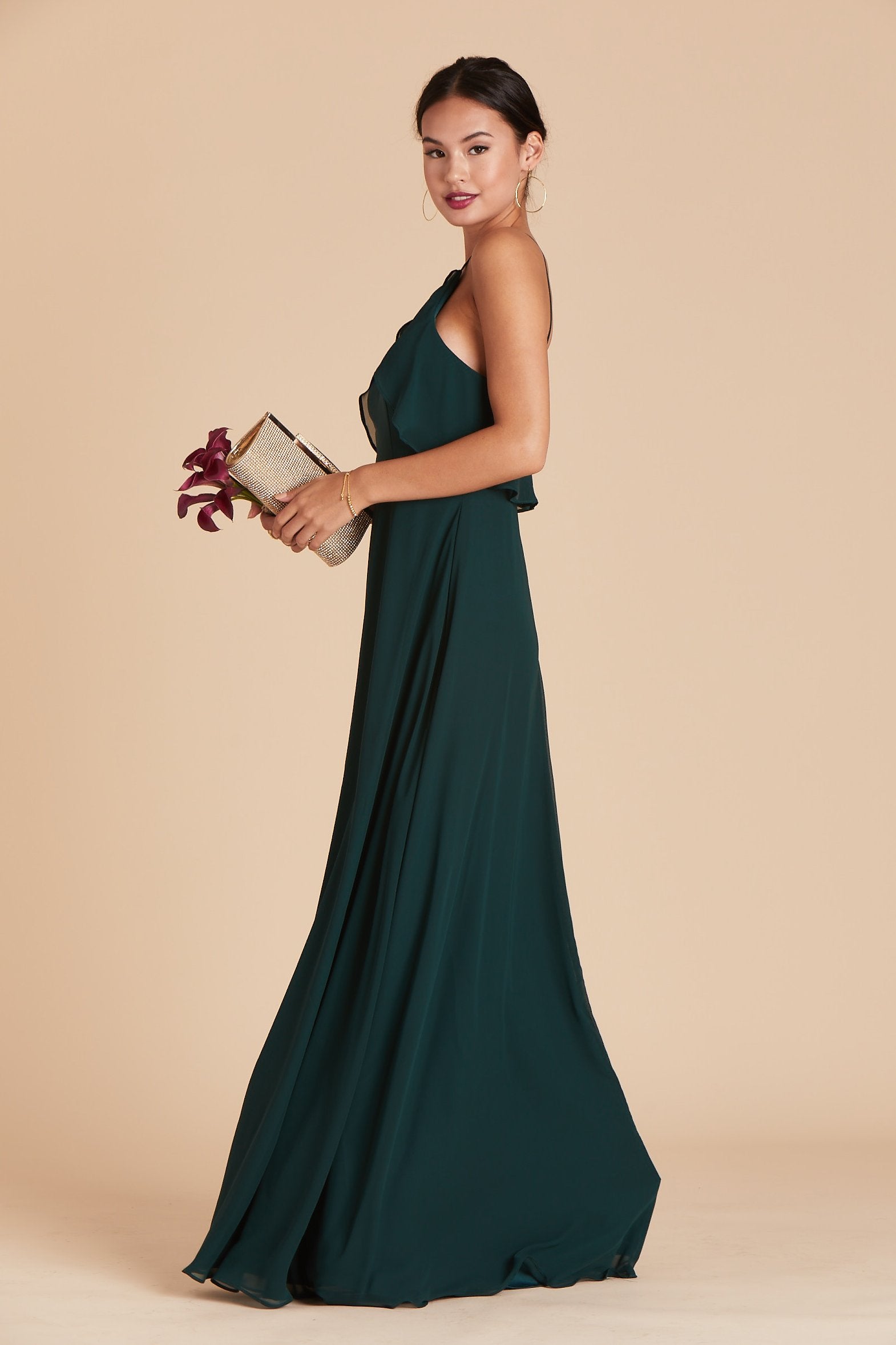 If you’re looking for the quintessential bridal party dress that will make your #BridalSquad glow from the inside out, then you’ve found it. The picture-perfect bridal party dress, that’s sure to compliment every bridesmaid’s shape and style, comes to life in our Jules Dress. It’s masterfully designed with super-soft ruffles, a refreshed halter neckline, and a long free-flowing spun chiffon A-line silhouette that dances against your body while you gleefully dance the night away. The best part? This bridal party dress is sure to please even the pickiest of bridesmaids and features built-in cups for added comfort, extra support, and a boost of self-confidence to keep your spirit high and your girls perky.