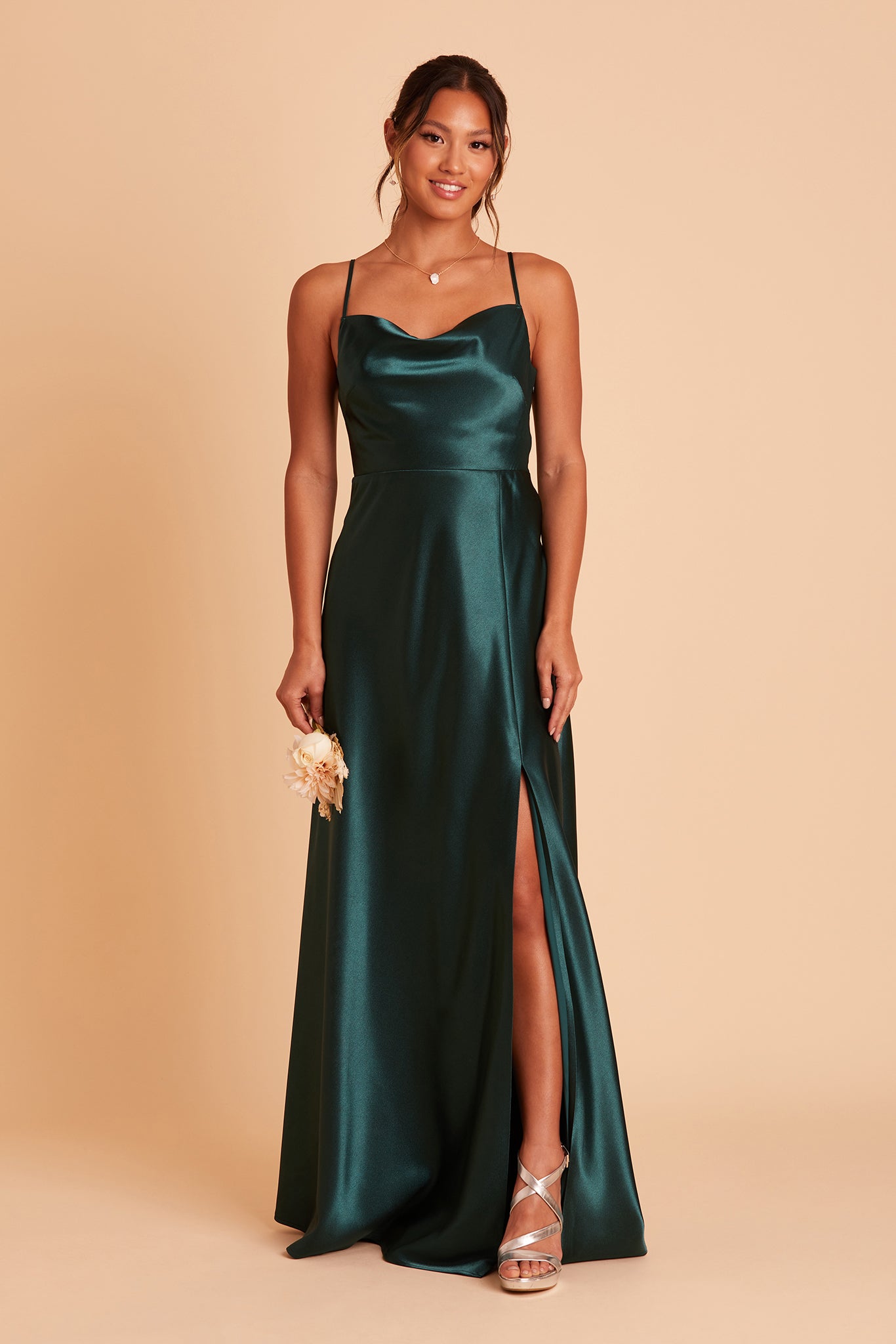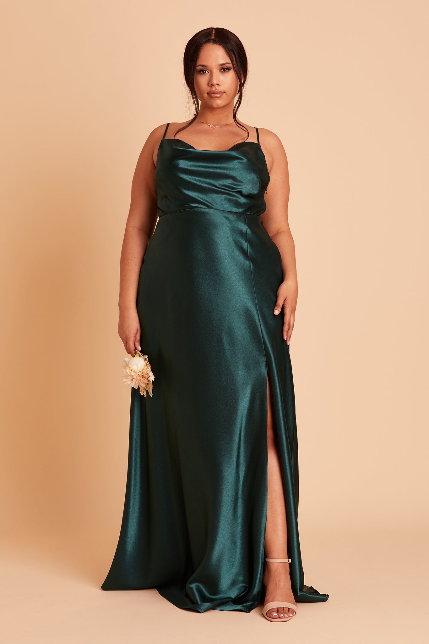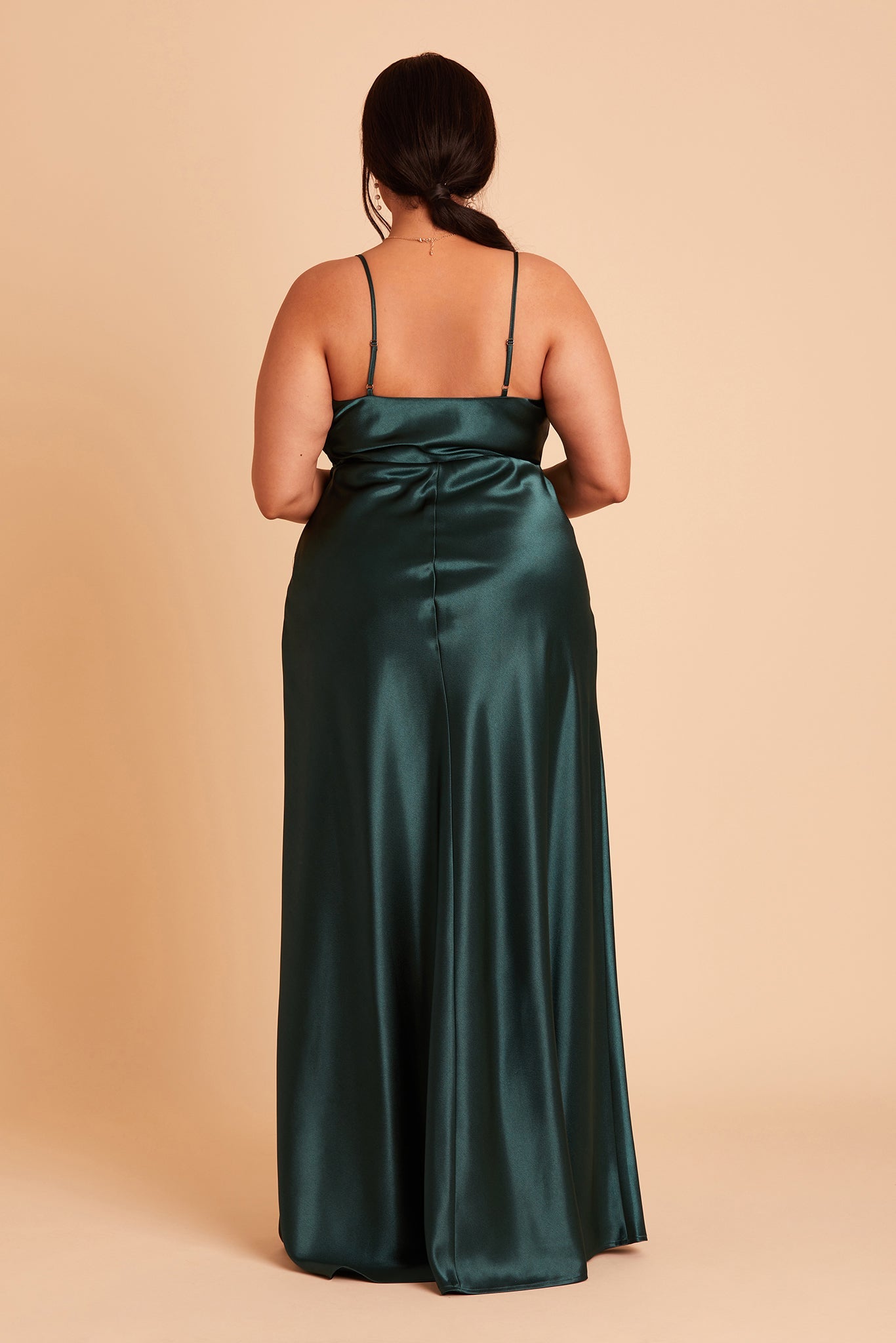 If our Lisa Satin Midi is the young, fun-loving sister, this floor-length one is the elegant, grown-up sis. She still flaunts the same signature '90s cowl neck, but this Lisa is a head-turning statuesque beauty. We see this satin bridesmaid dress paired with a chic little clutch, and a dainty pearl necklace to accentuate your collarbone.