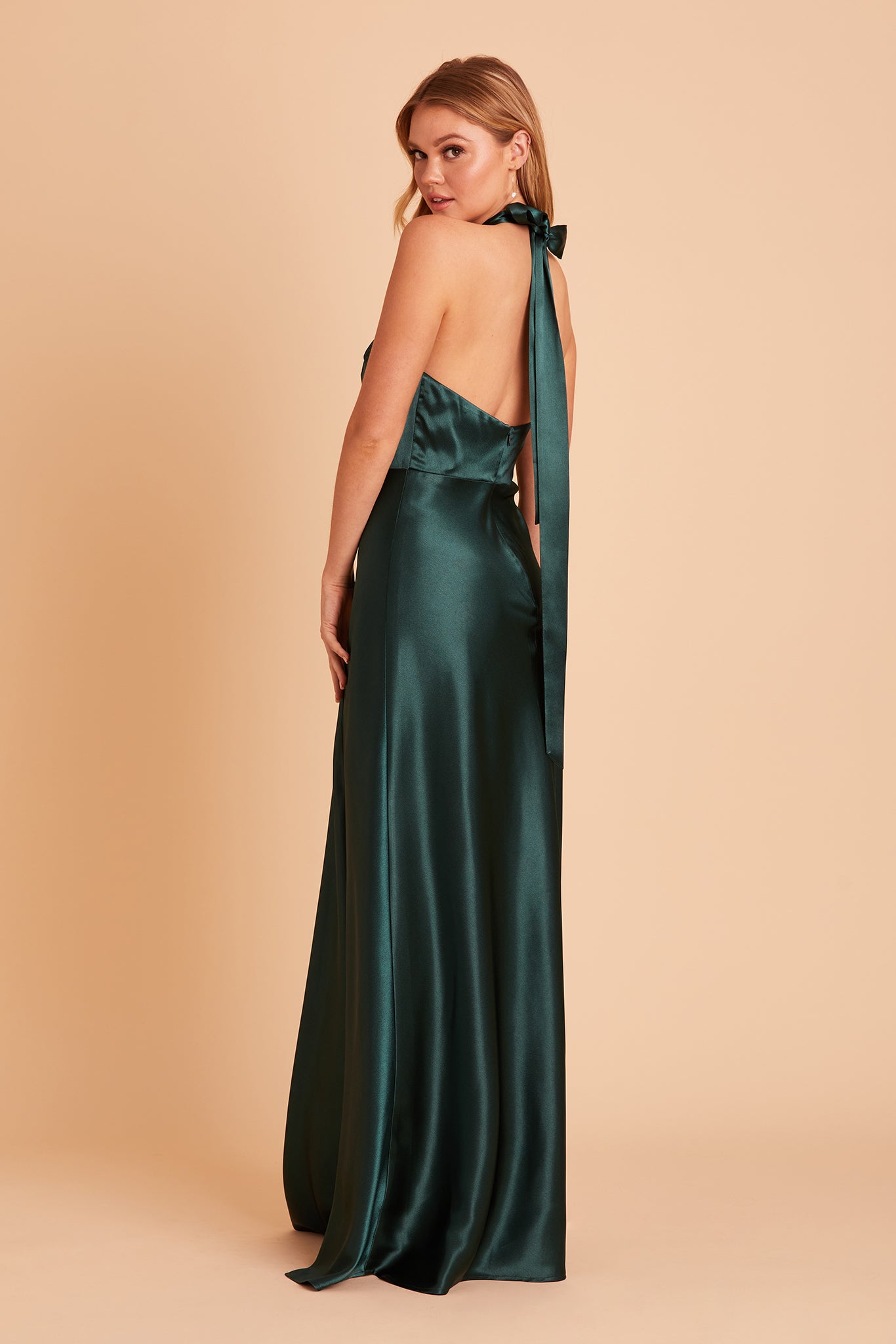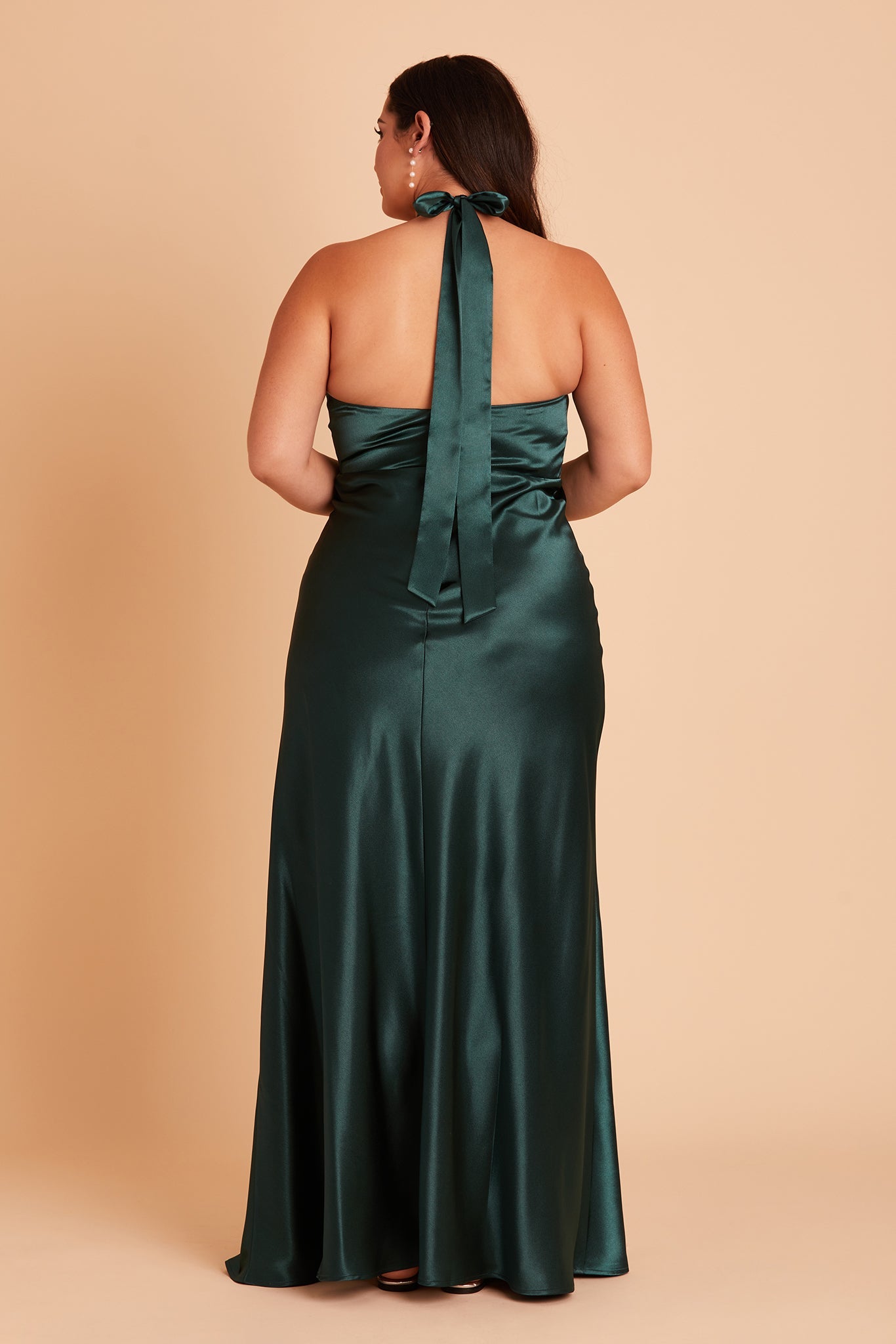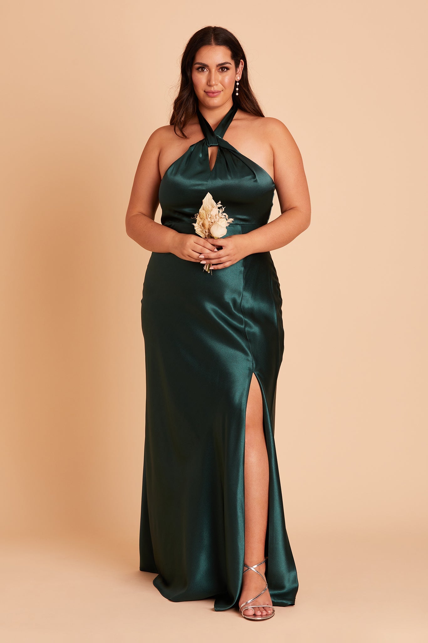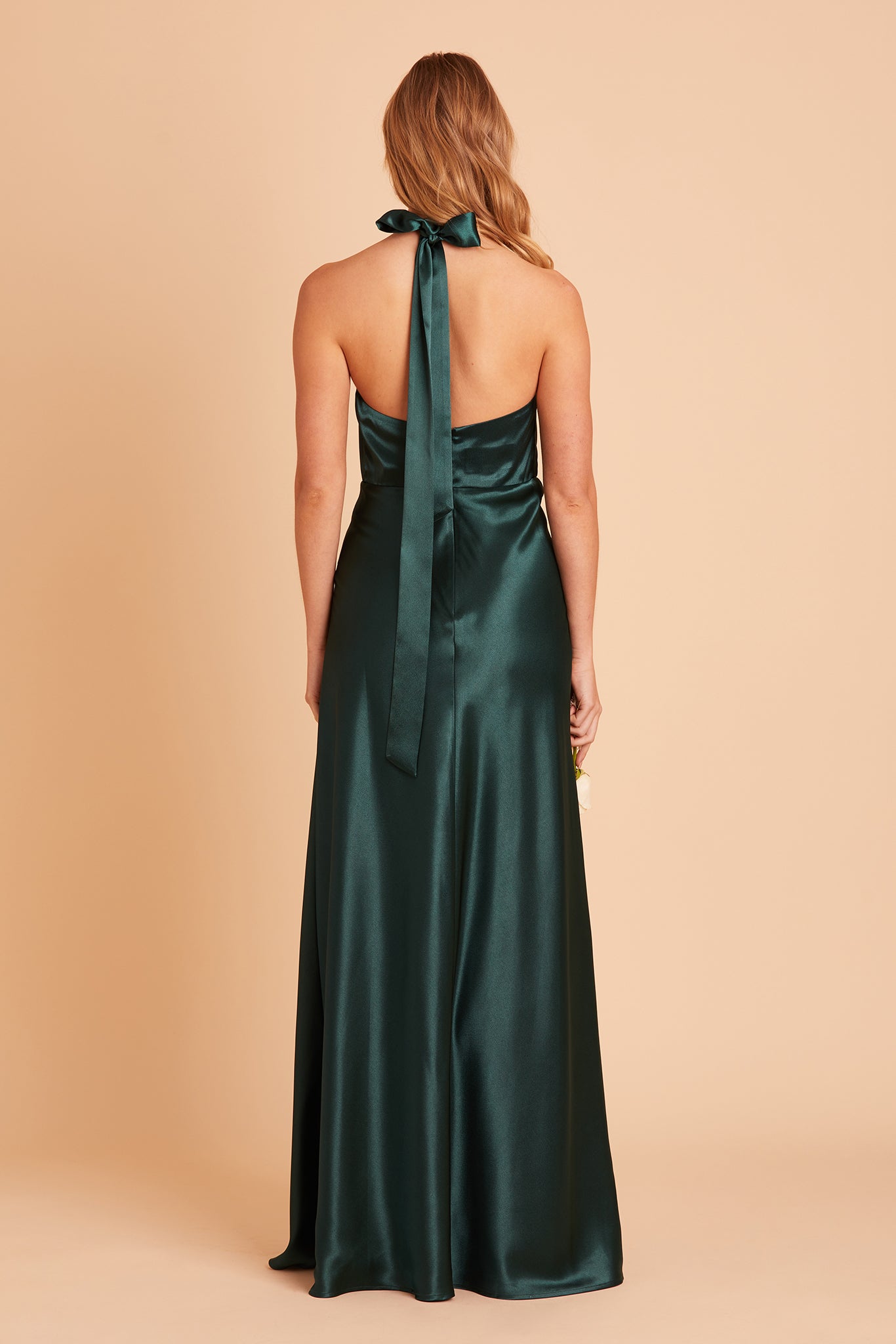 Your wedding will look like a star-studded event with your bridal party wearing this twist-front halter satin bridesmaid dress. The lustrous fabric of this floor-length gown makes each color look rich and regal while the halter style creates an alluring look that's on par with an A-list Hollywood star. We love this bridesmaid dress paired with a low bun that softens the cool, modern style while showing off the neckline.