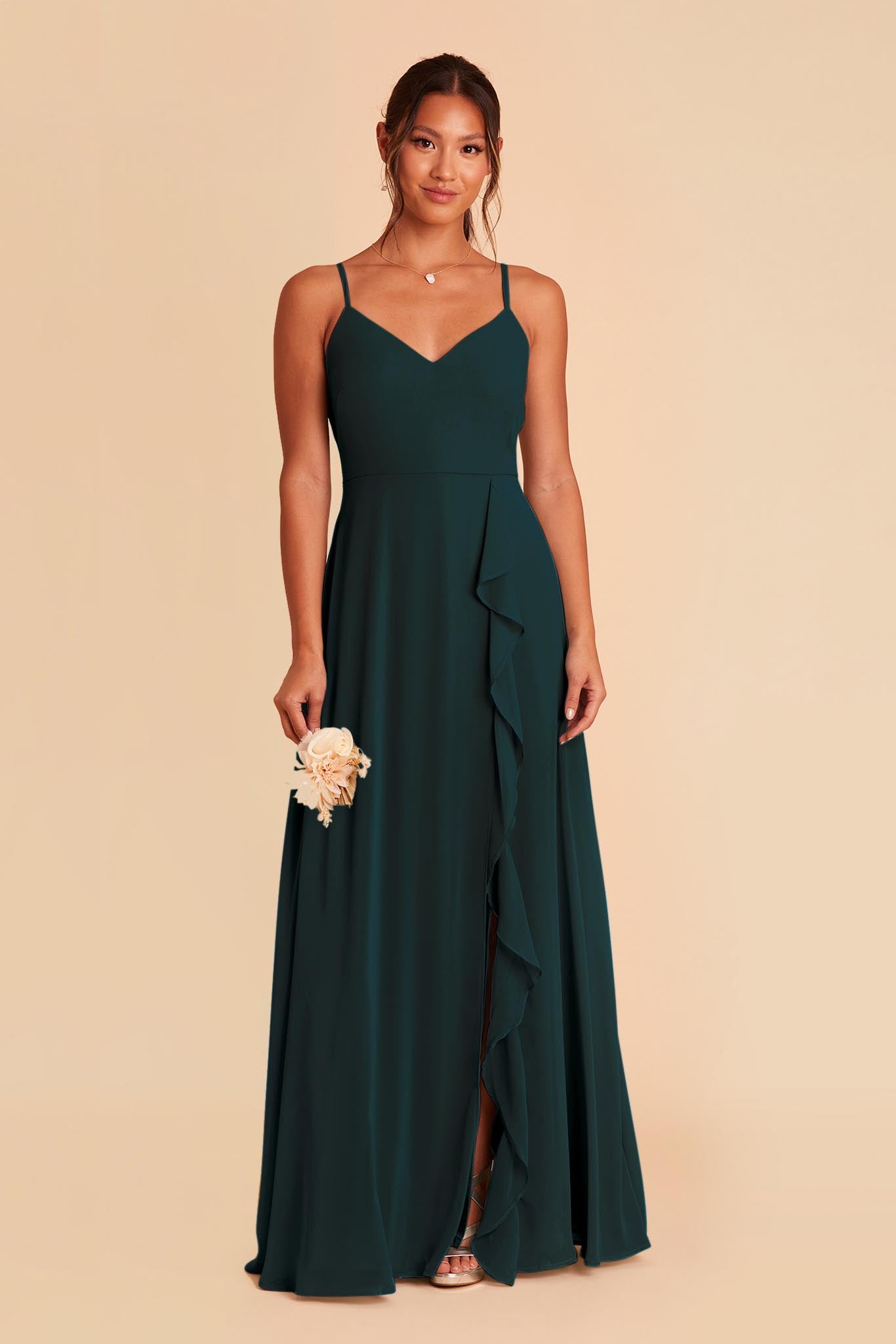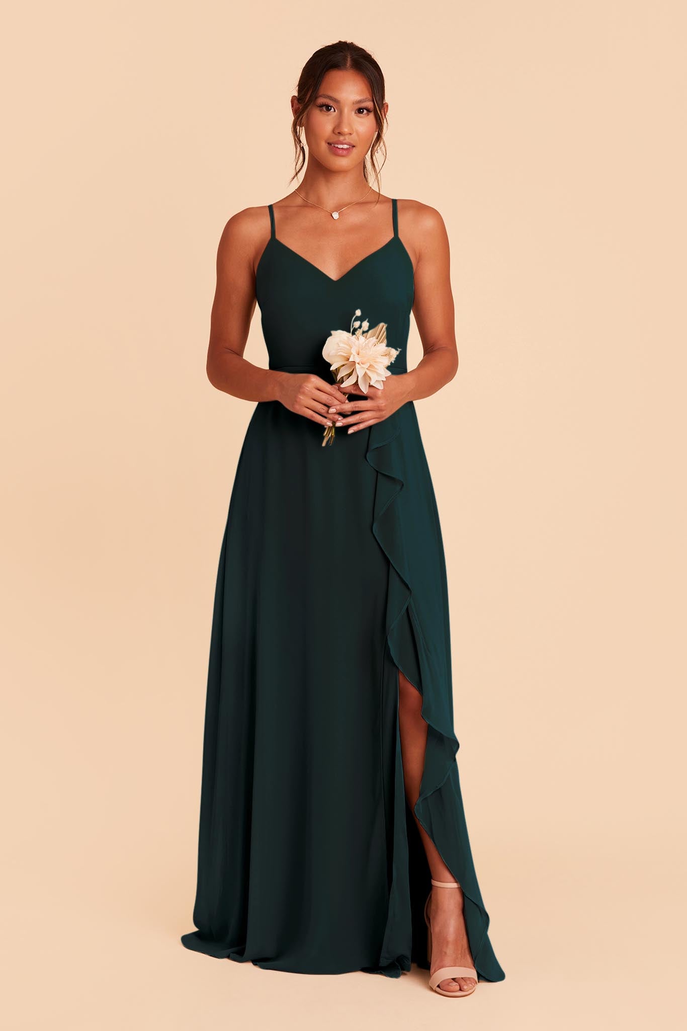 Timeless style, meet ultimate breathtaking details. We think you’ll be the perfect match. The downright class of this understated, super flattering bodice paired with a chiffon ruffle cascading down the leg slit gives a waterfall effect while you strut down that aisle. You still get all the side-slit sass, just elegantly softened with a feminine ruffle. Talk about the best of both worlds. Plus, the adjustable spaghetti straps with two ways to wear give you all the comfy options to make sure you’re dancefloor-ready all night long.